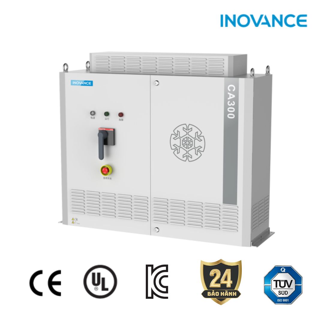 Dòng biến tần CA300 áp dụng công nghệ điều khiển vector hiệu suất cao, tự động điều chỉnh tỷ lệ điện áp-tần số đầu ra của biến tần theo tải của động cơ, giúp tăng hiệu suất của động cơ và hệ thống, đồng thời giảm tiêu thụ năng lượng, tiếng ồn và rung động của động cơ. Điều này giúp dễ dàng tối ưu hóa khả năng làm mát với nhiệt độ và áp suất ổn định của các thiết bị máy nén trong hệ thống máy làm mát nước và các hệ thống HVAC khác.