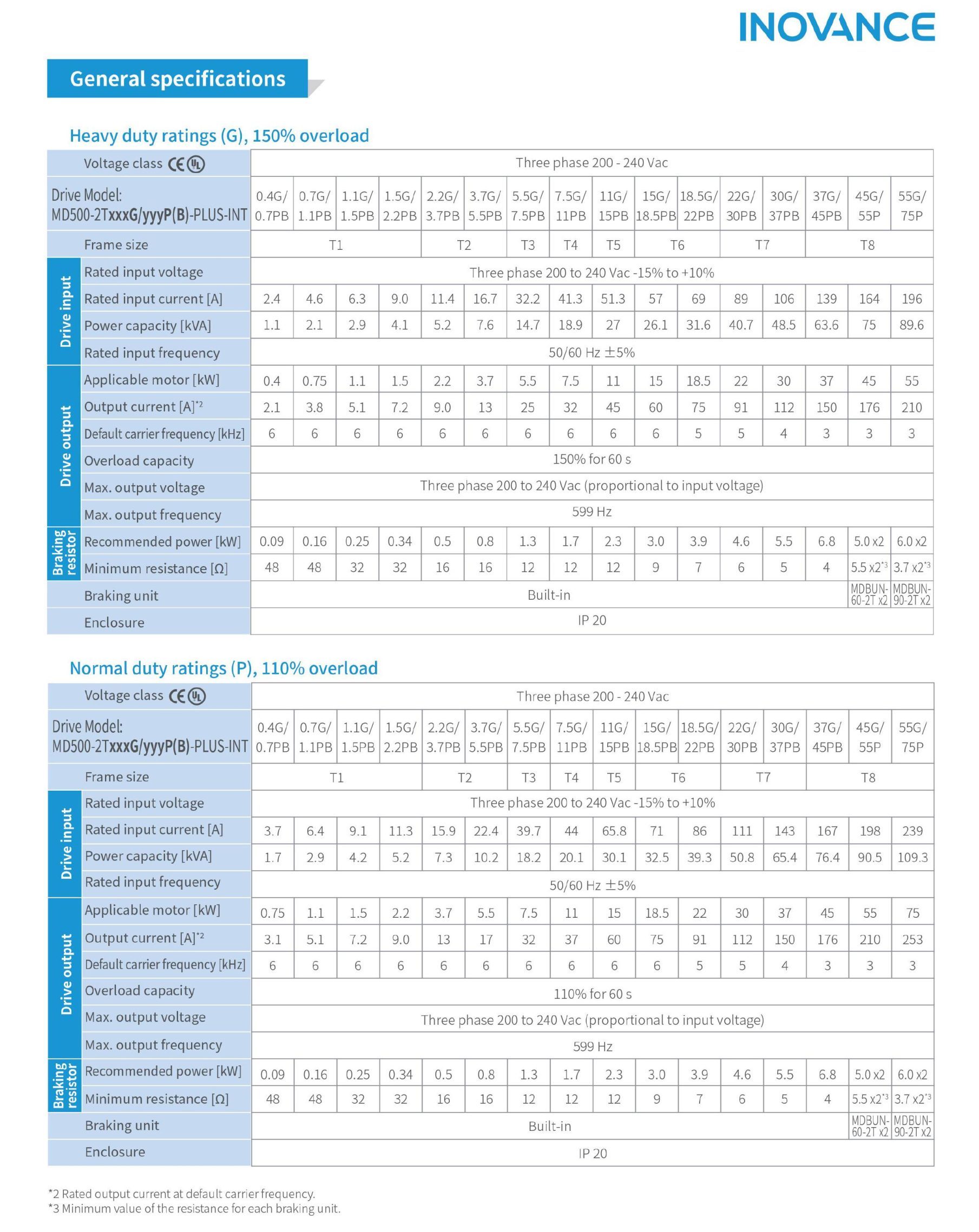 - 1 pha 200-240 Vac: 0.4 tới 2.2 kW