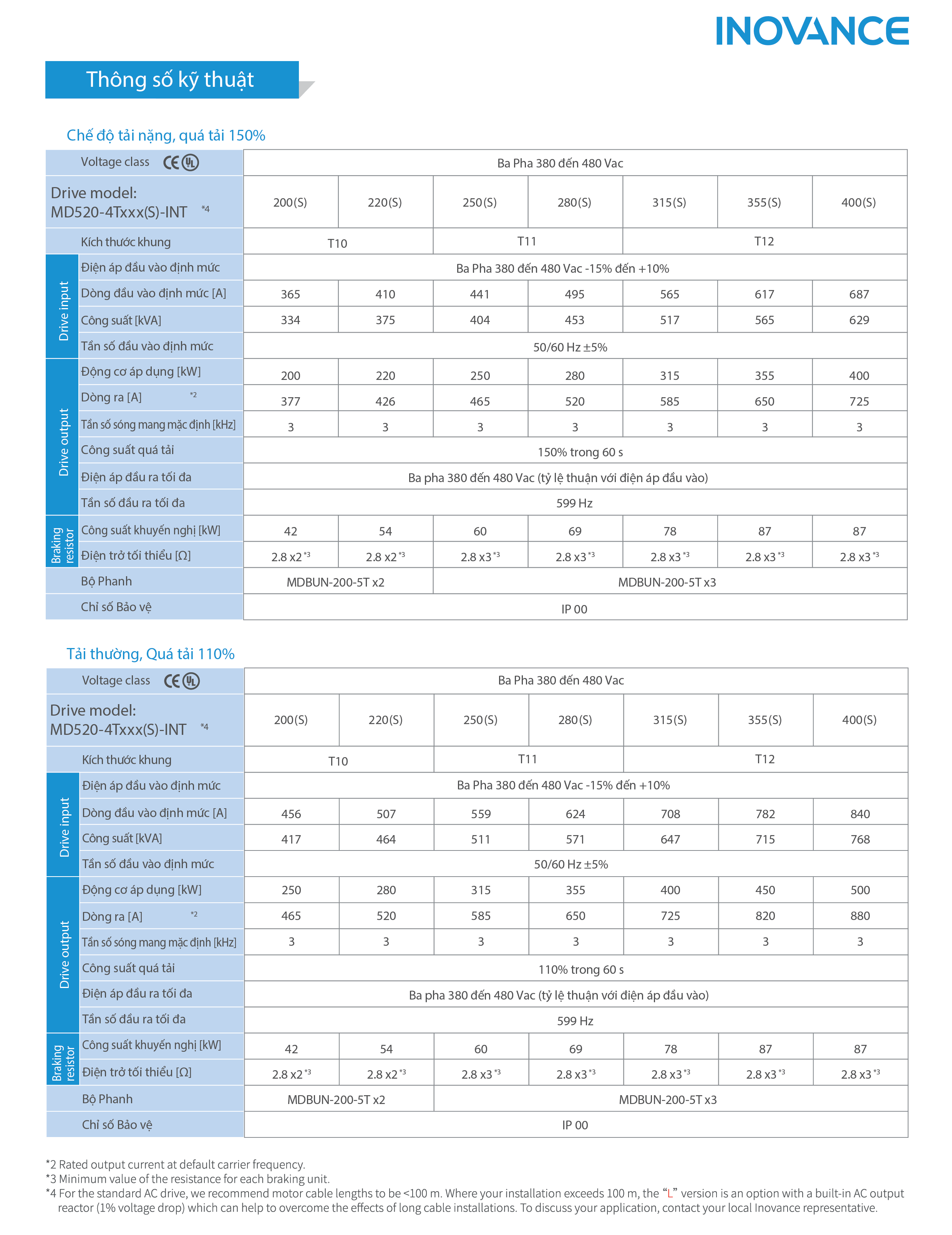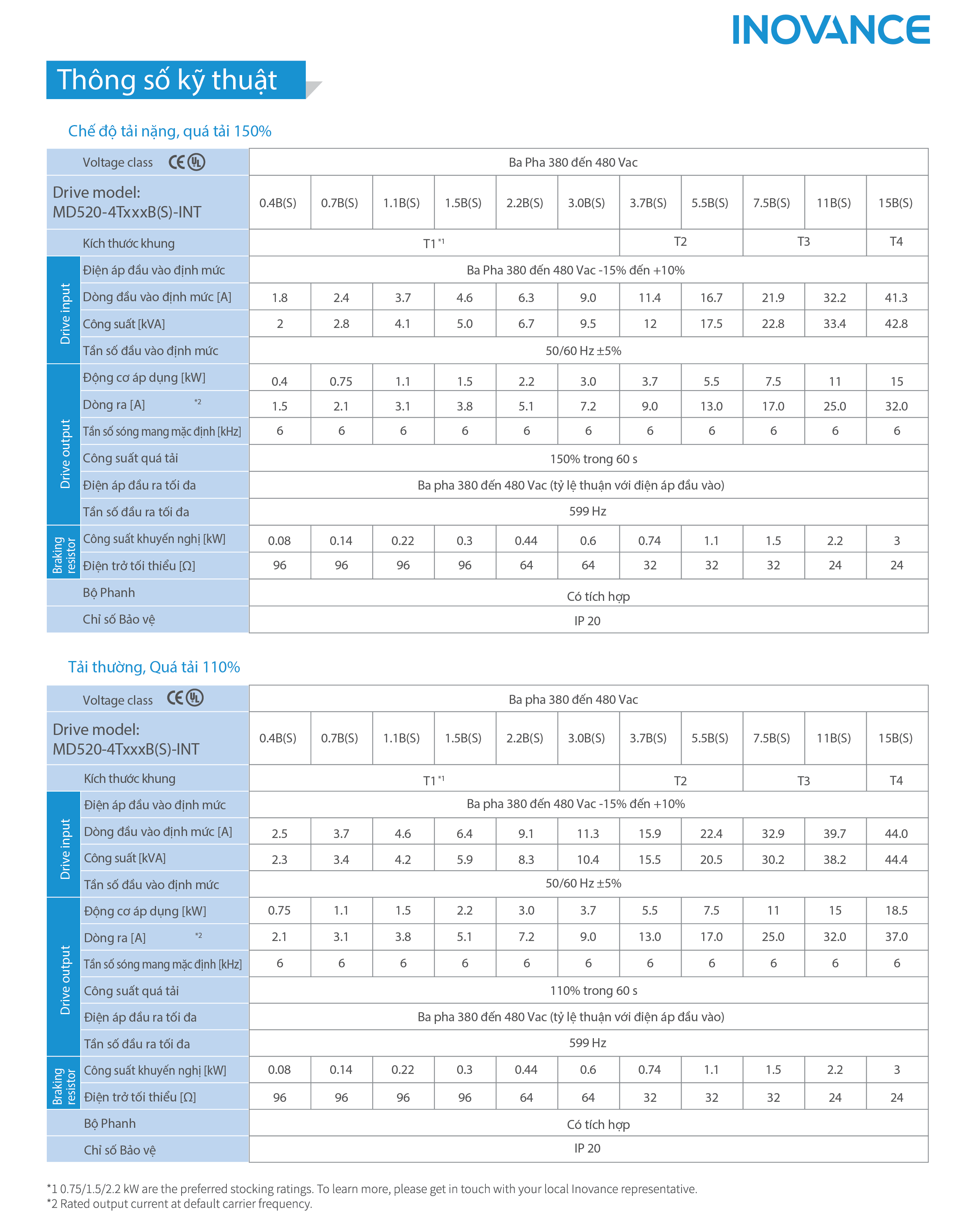 2. Công suất biến tần Inovance MD520